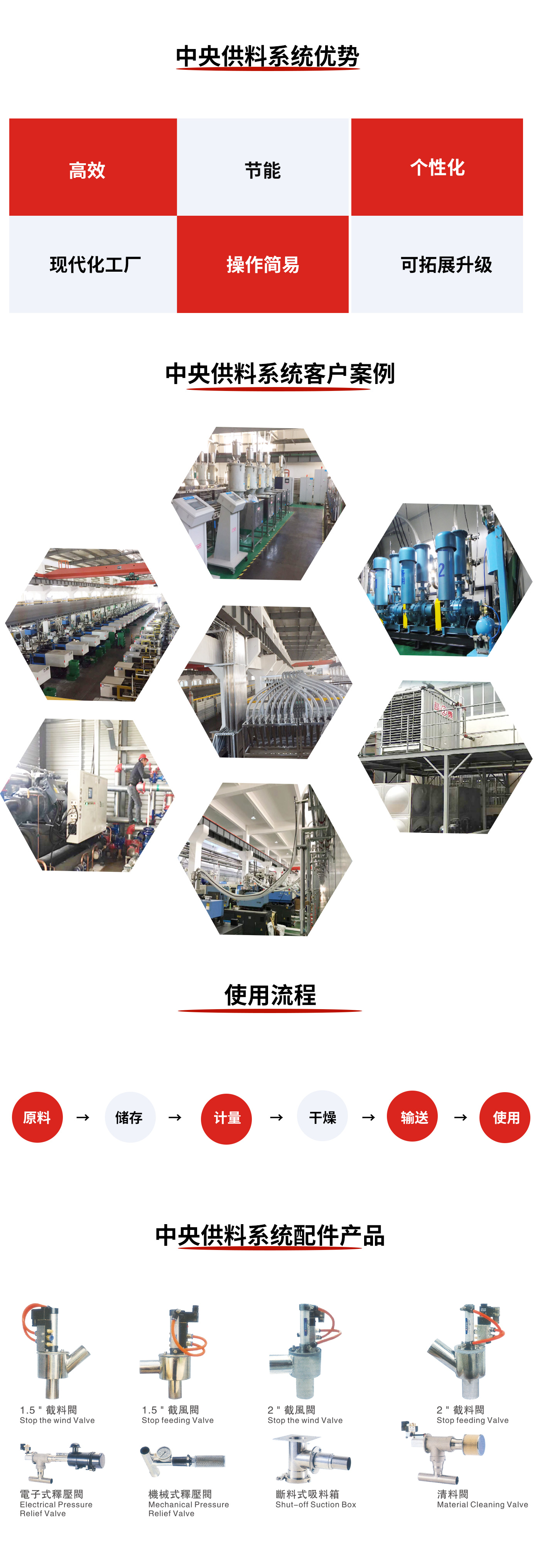 中央原料选料站是在开云(中国)中配合中央控制站的选料功能将原料分配到相应的储料斗。选料站有多种规格,其配备快速接头,装卸方便,采用不锈钢制作,原料不易污染。