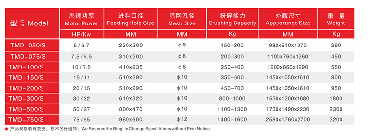 强力型粉碎机TMD系列 特别适用于各类硬性塑胶之粉碎再利用,效果更佳。刀架优化设计,又分为片型刀具,爪型刀具。爪型刀具可分散受力度,使得每片刀的剪切加大,尤其适合厚件产品及大块胶头,硬质料块等,有效的提高了刀具切削力、减少刀具磨损。设有电控...